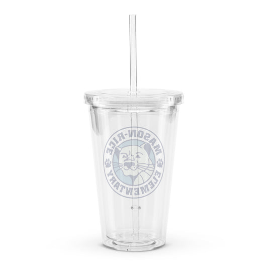 Clear plastic tumbler with logo